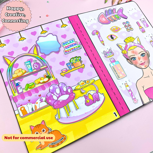 Education Activity Book | Pink Cat Spa Barbie Play Book, Safe Paper Toy for kid, Unique Birthday Gifts, Family connection, Limit screen time, Boost creativity