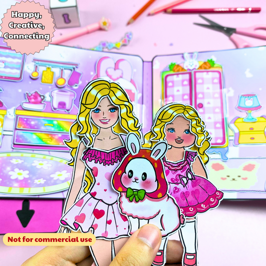 Education Activity Book | Pink Easter Egg Kinder Activity Book, Paper Doll House for Kids, Busy Book , DIY Crafts, Perfect Gifts for Girls