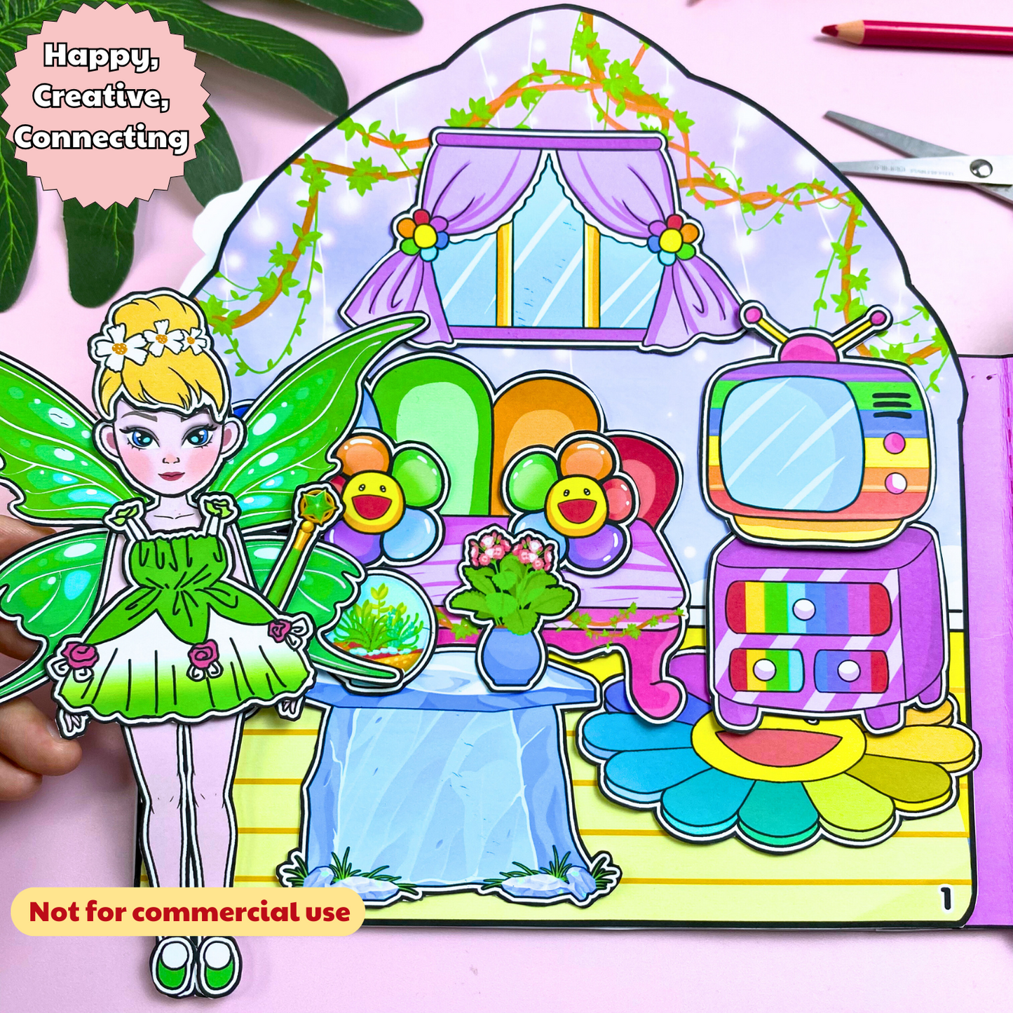 Education Activity Book | Flower Fairy Paper Doll House, Perfect Gift for Girls, Birthday Gift for Kids, Montessori Toys