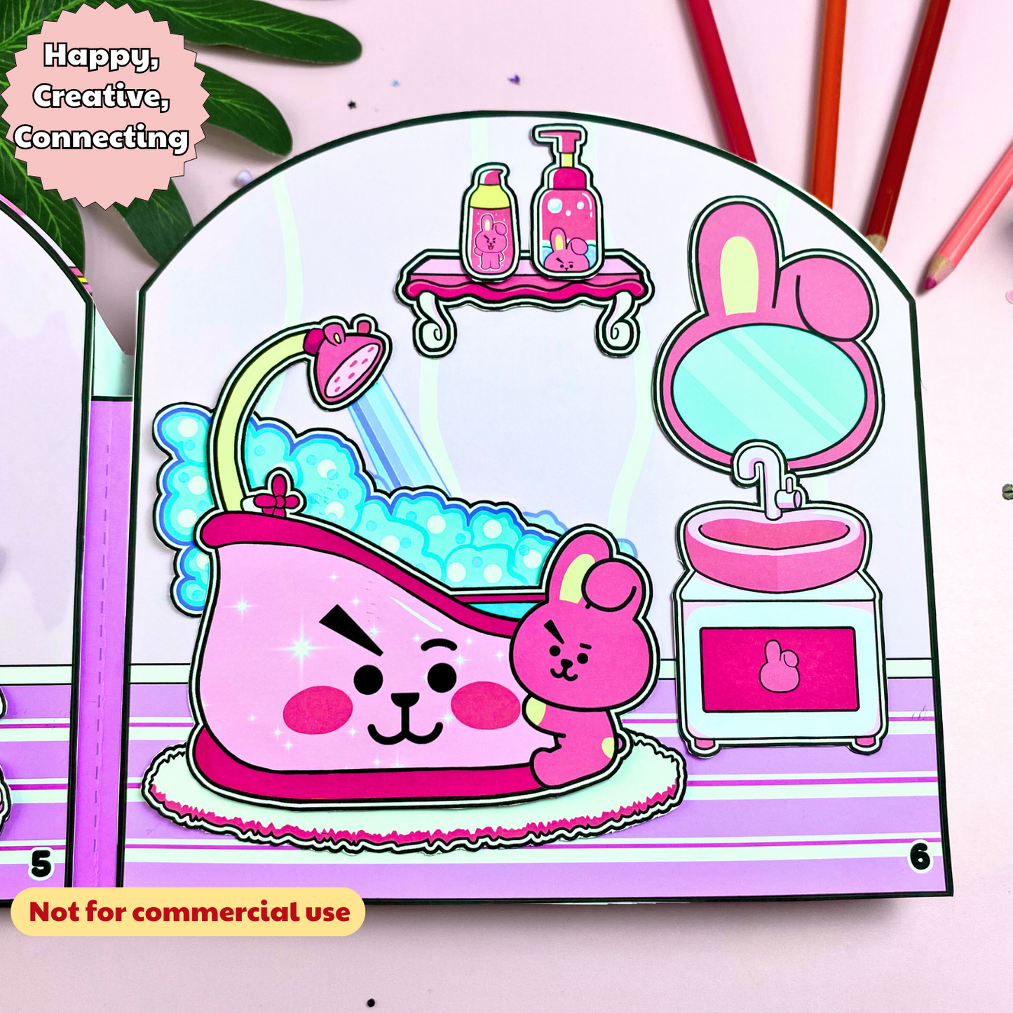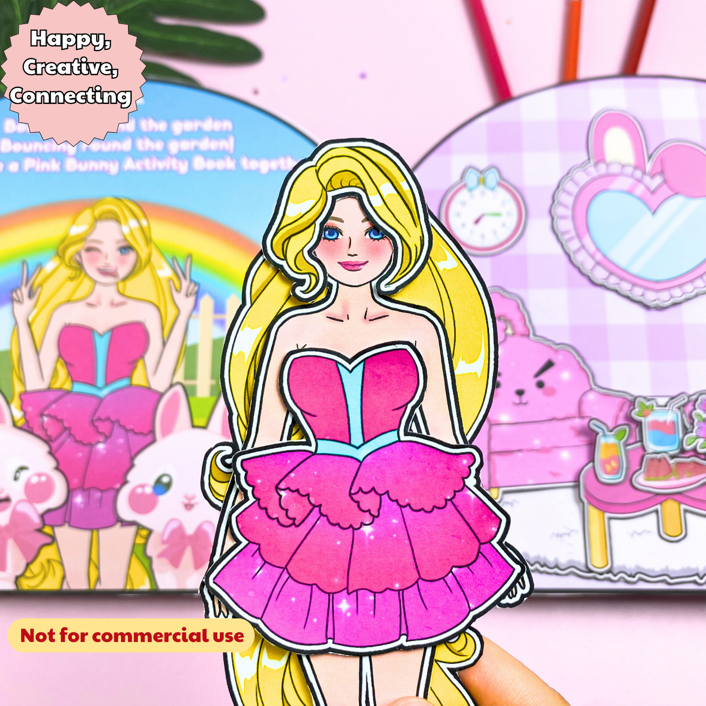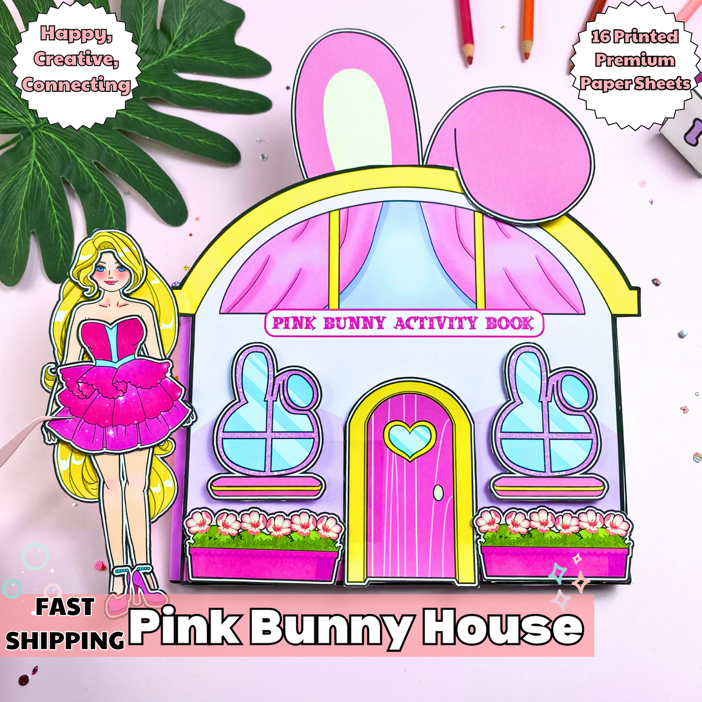 Education Activity Book | Pink Bunny Paper DollHouse, Paper dollhouse play set | DIY gift for kids | Paper doll | Handmade Story Book