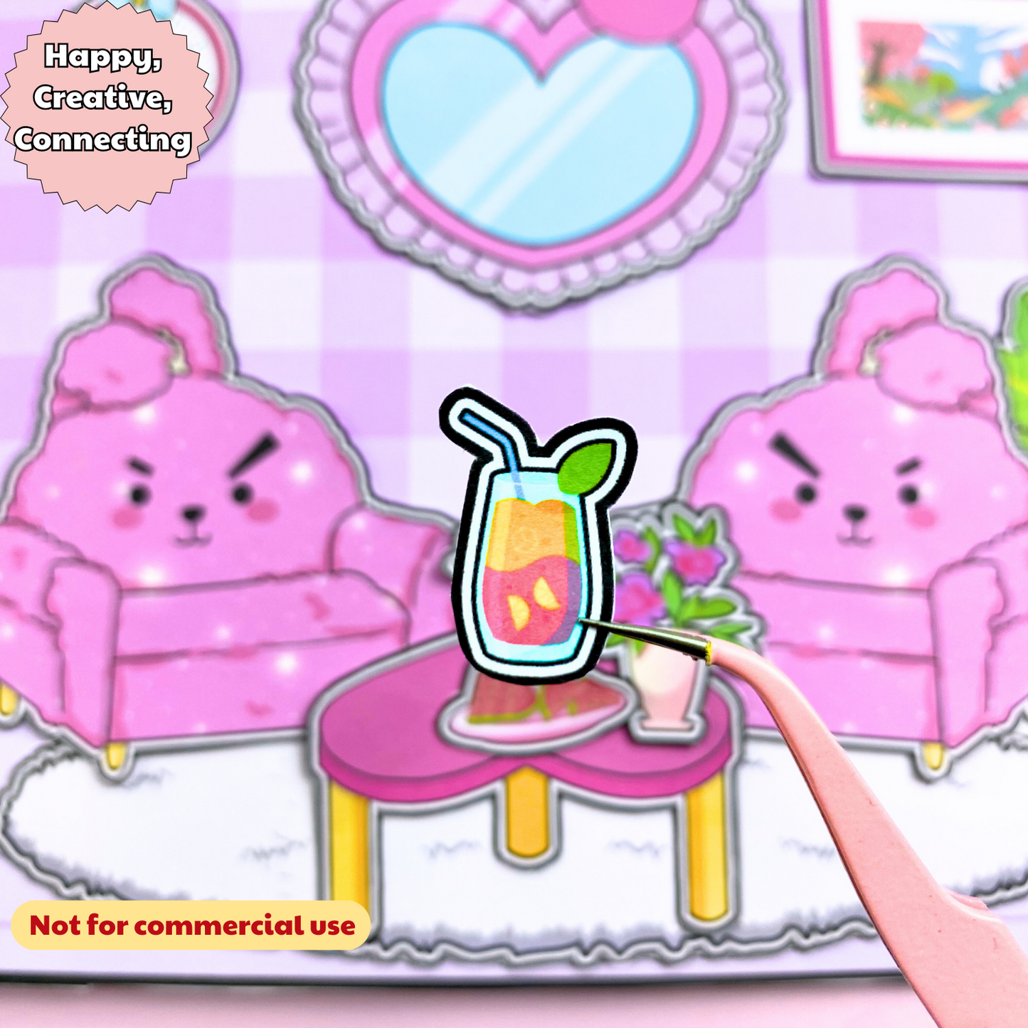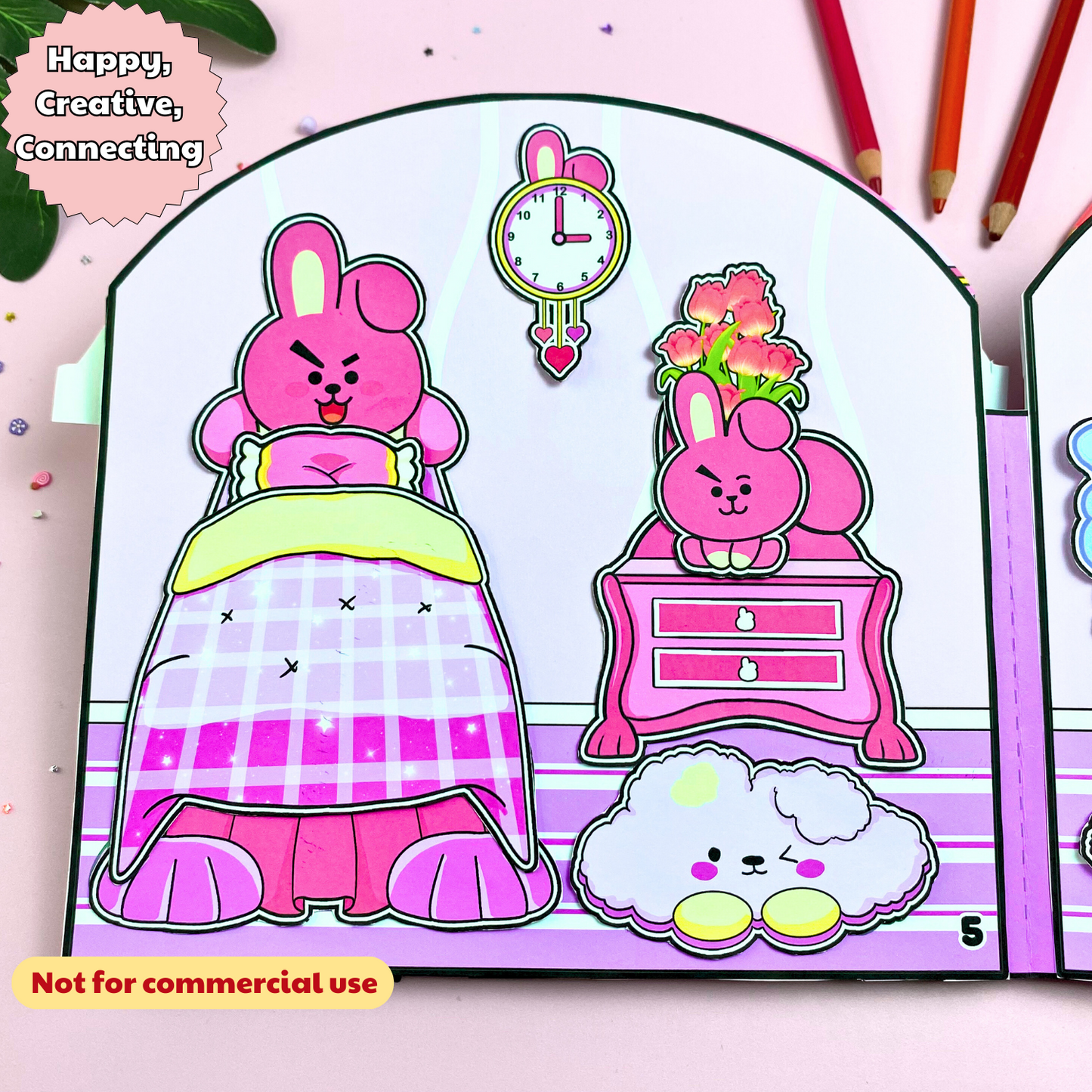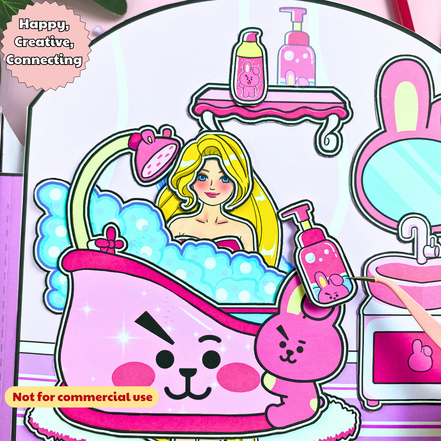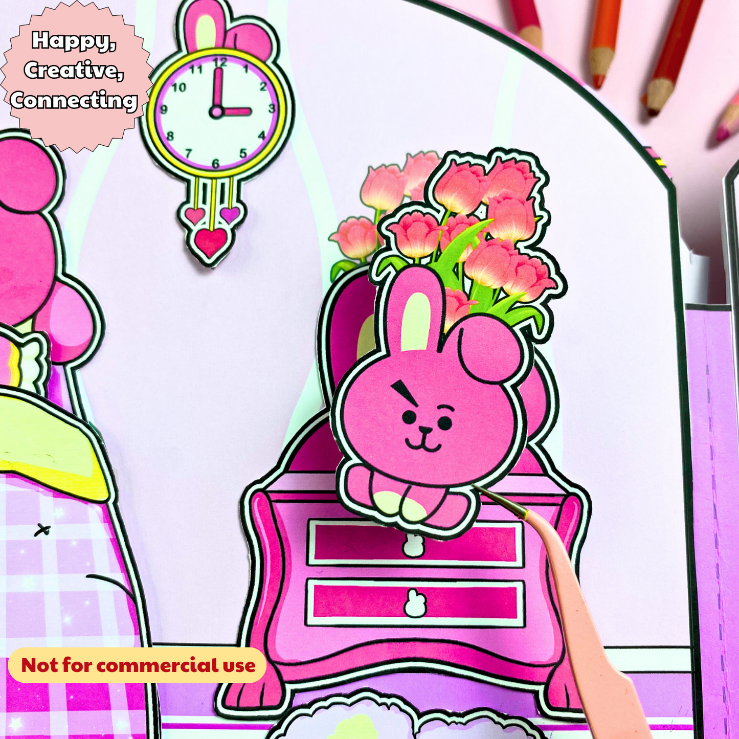 Education Activity Book | Pink Bunny Paper DollHouse, Paper dollhouse play set | DIY gift for kids | Paper doll | Handmade Story Book
