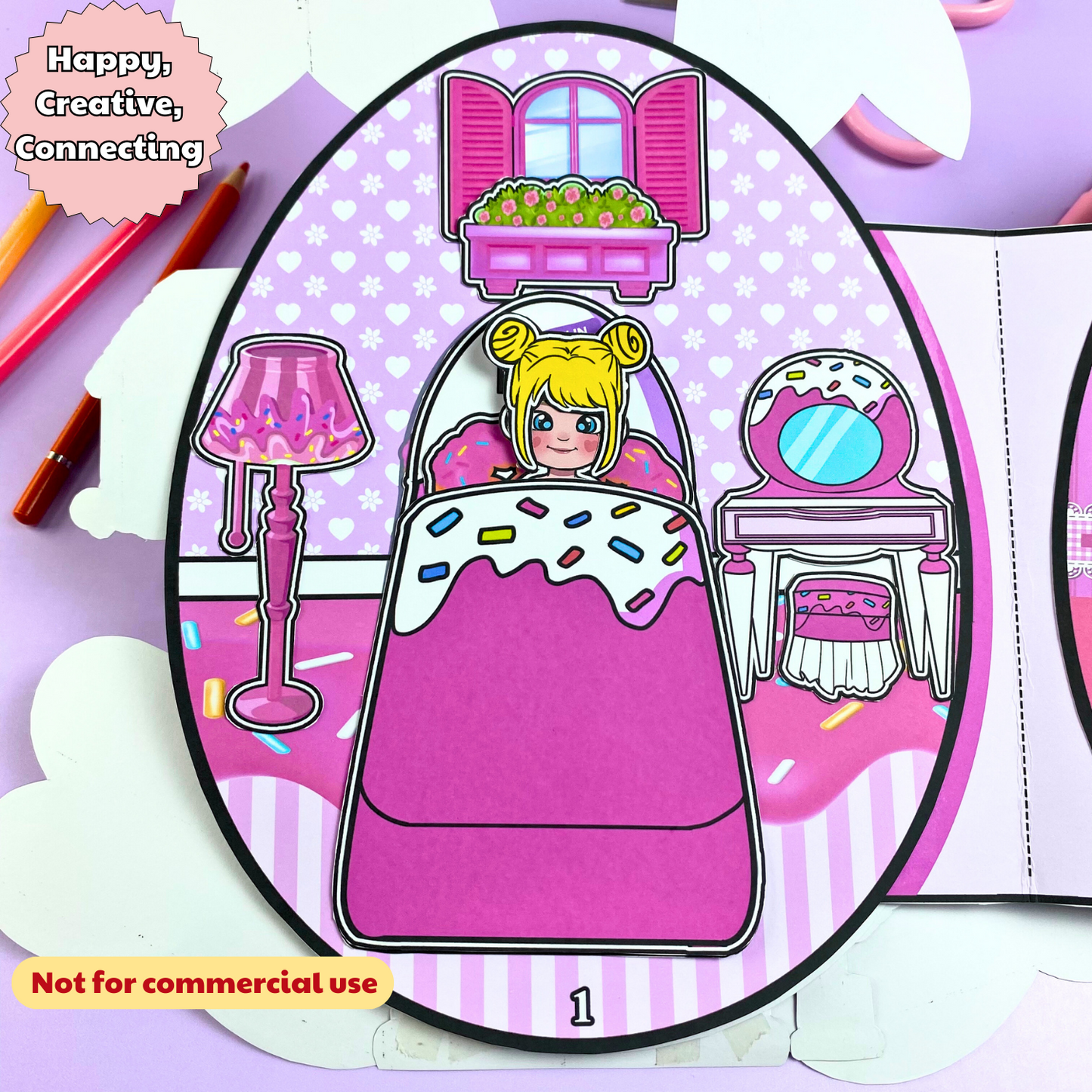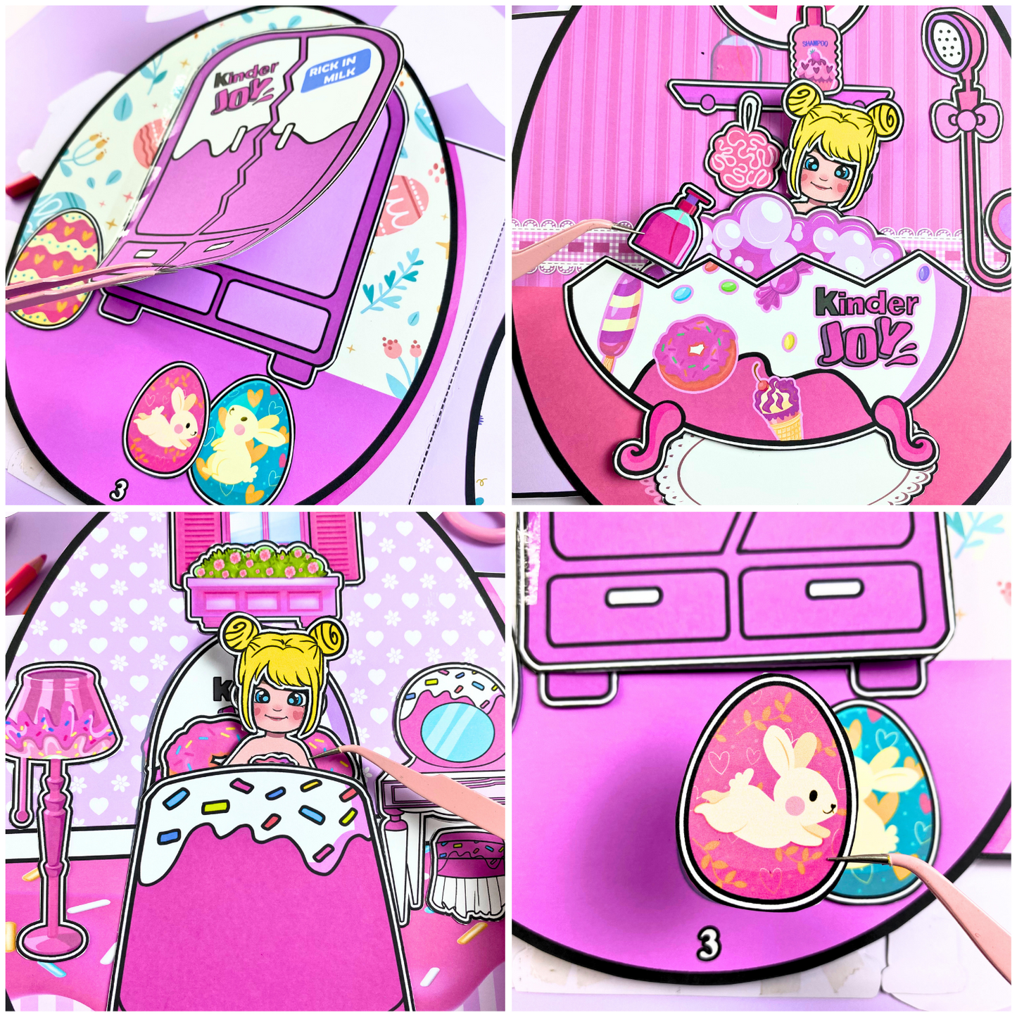 Education Activity Book | Pink Easter Egg Kinder Activity Book, Paper Doll House for Kids, Busy Book , DIY Crafts, Perfect Gifts for Girls