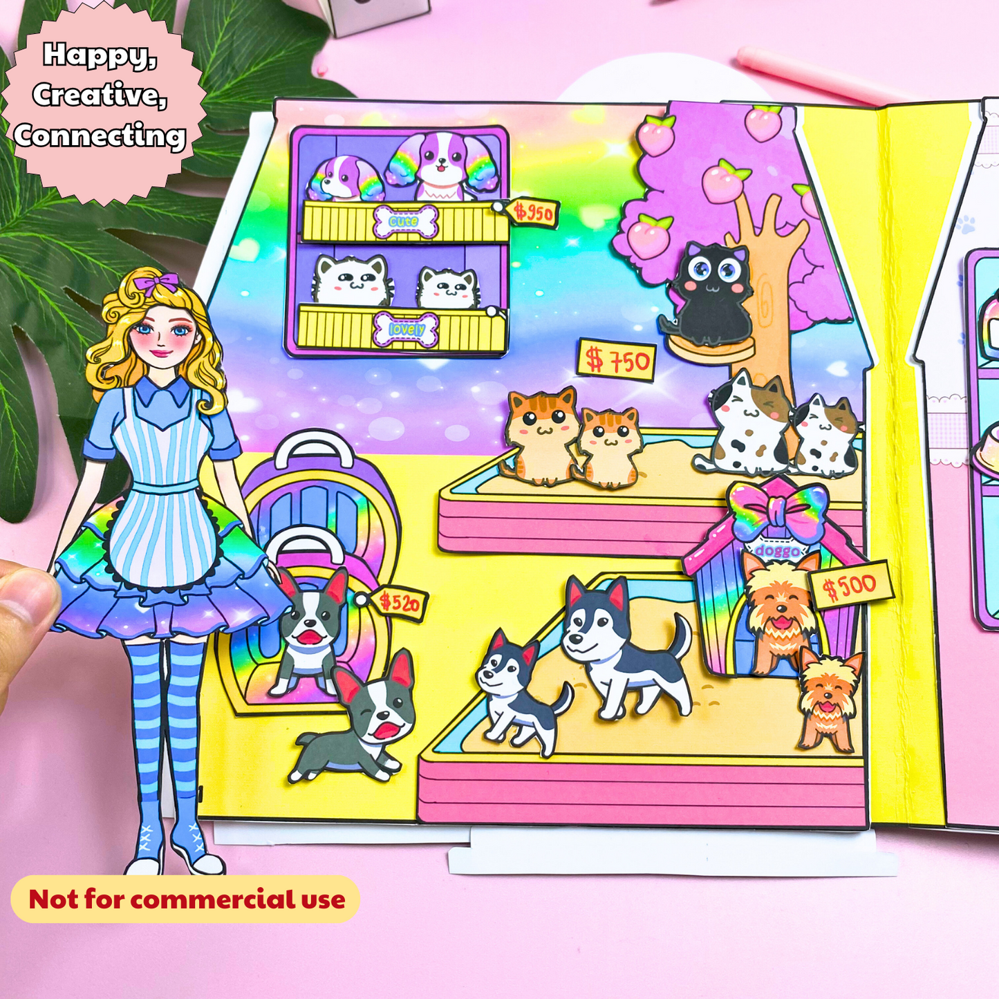 Education Activity Book | Pet Store Doll House, Safe Paper Toy for kid, Unique Birthday Gifts, Family connection, Limit screen time, Boost creativity