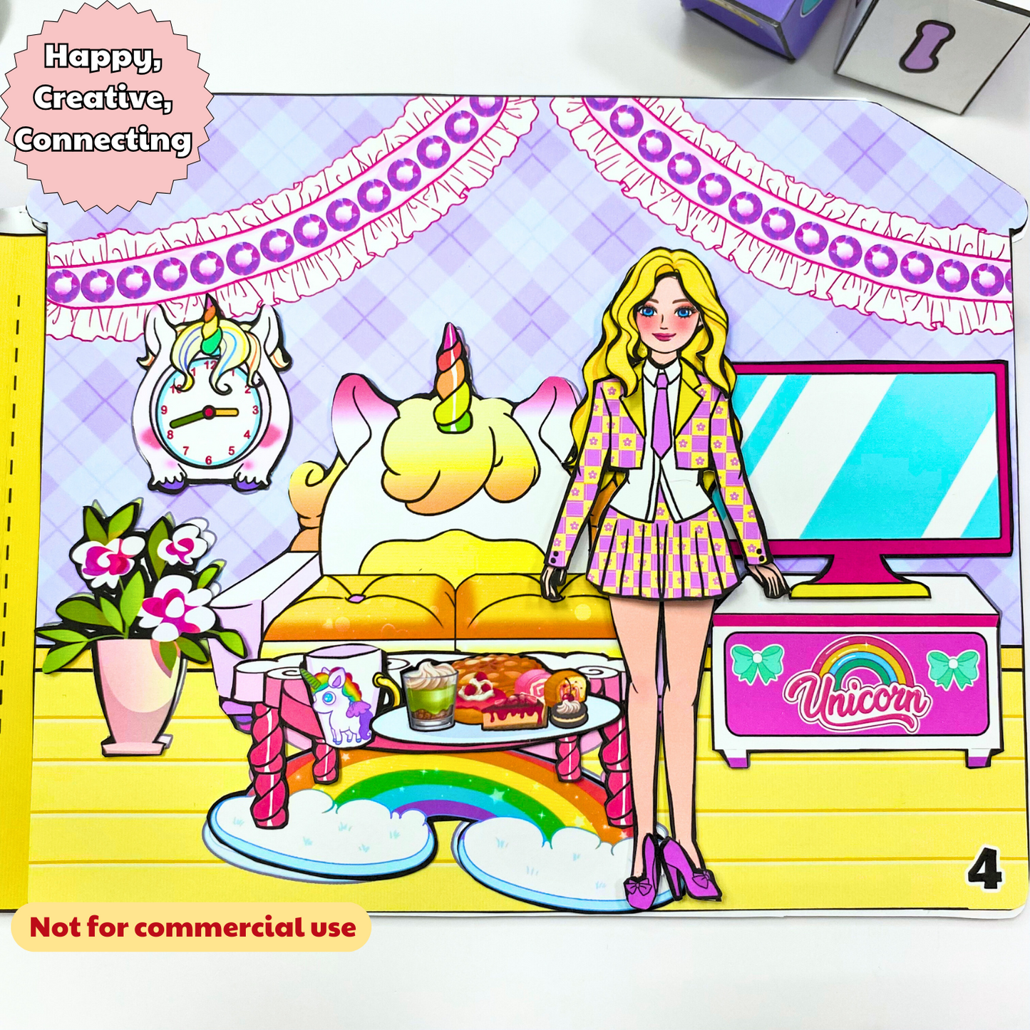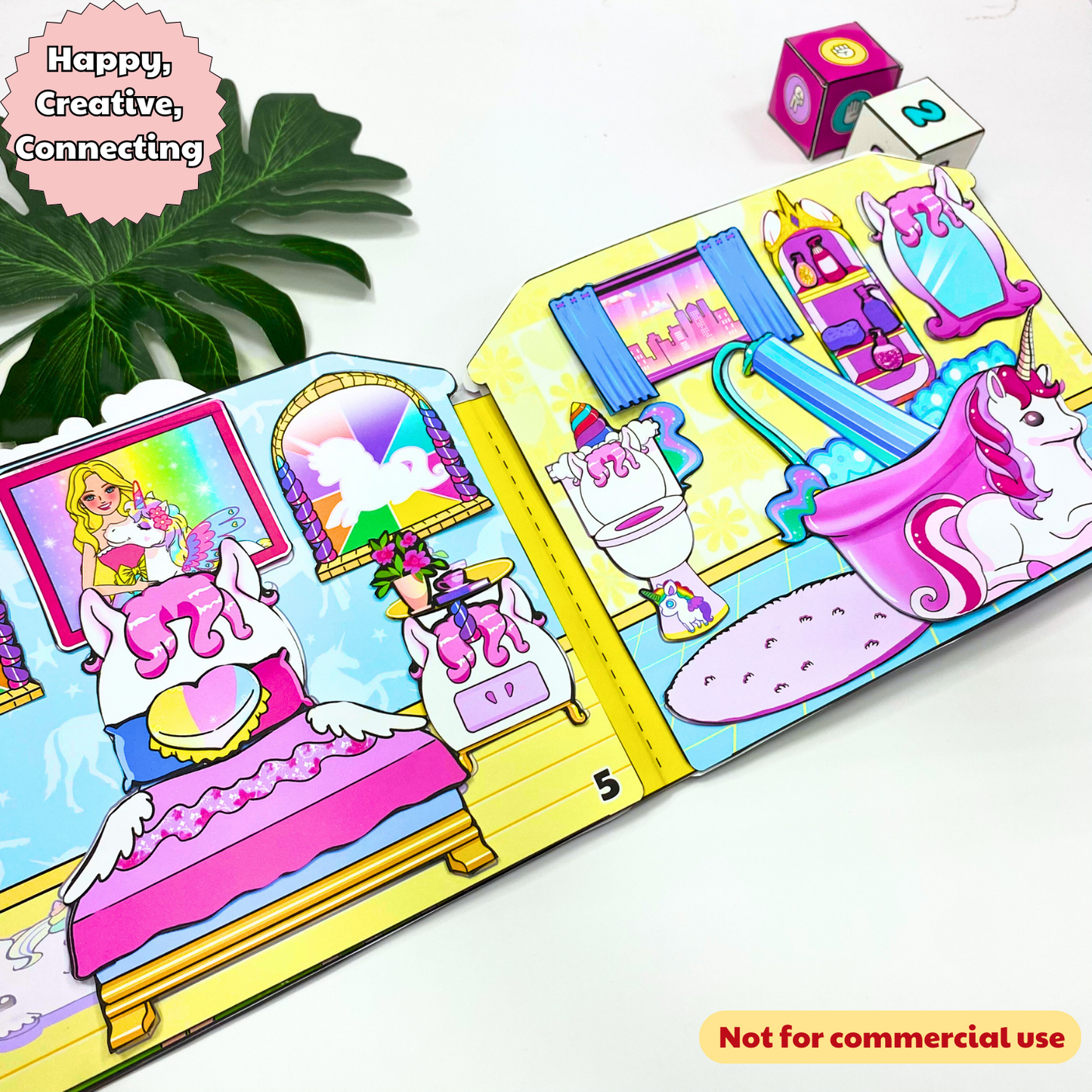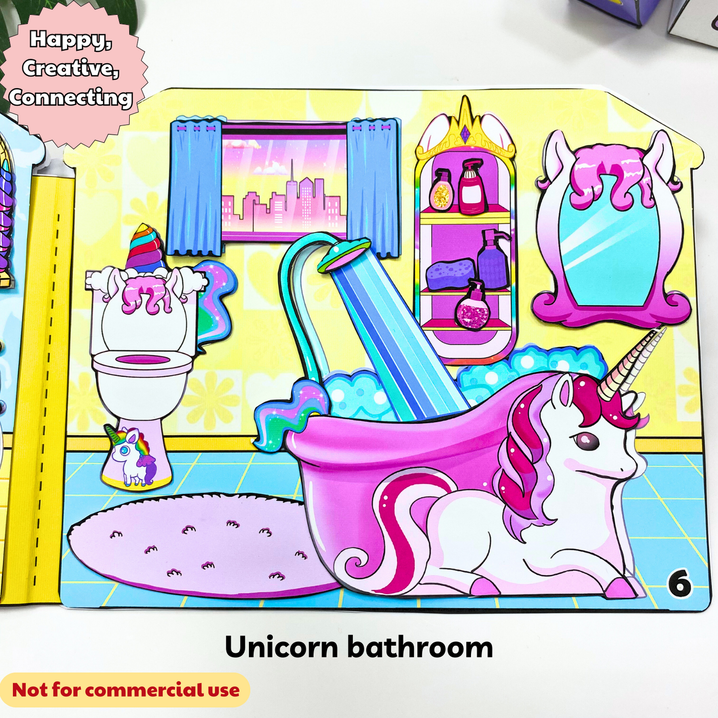 Education Activity Book | Unicorn Funny story Doll house , Story Acitivity Book for toddlers, Busy book for kids