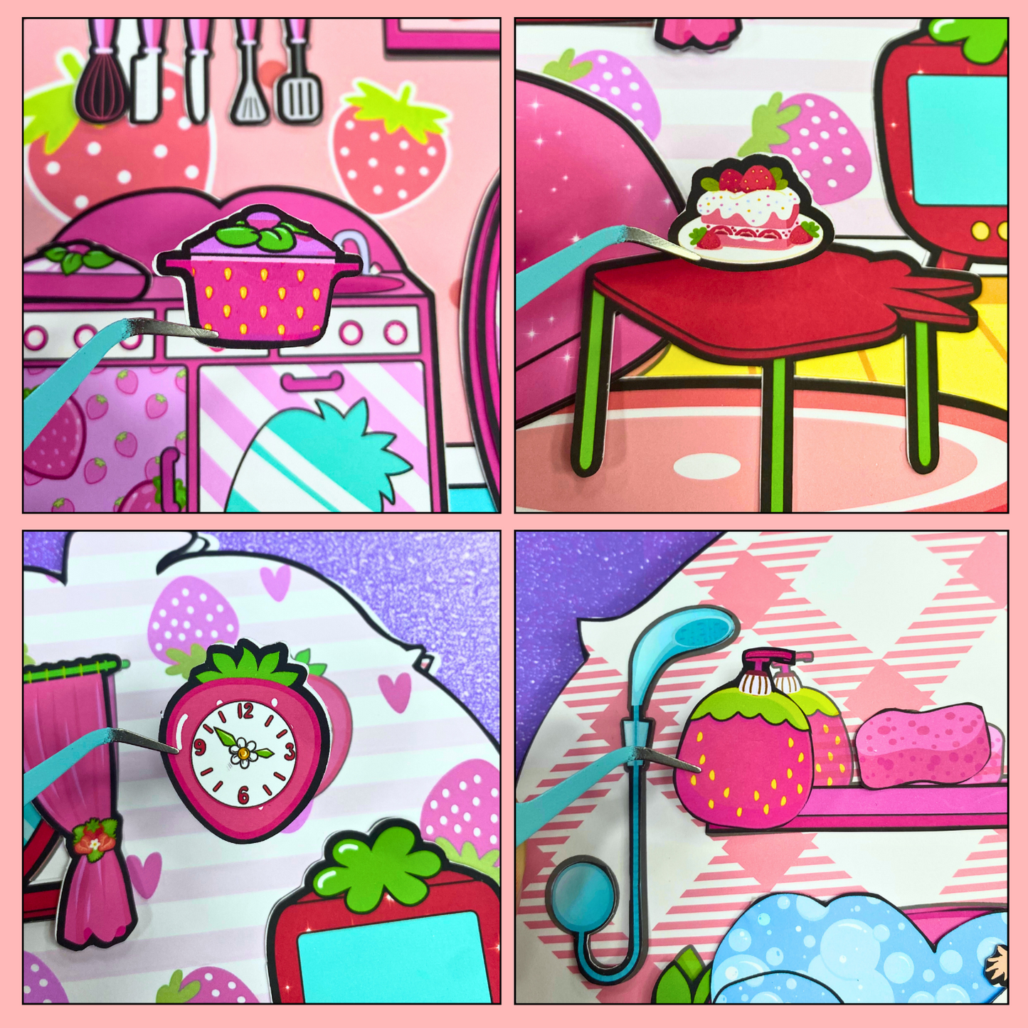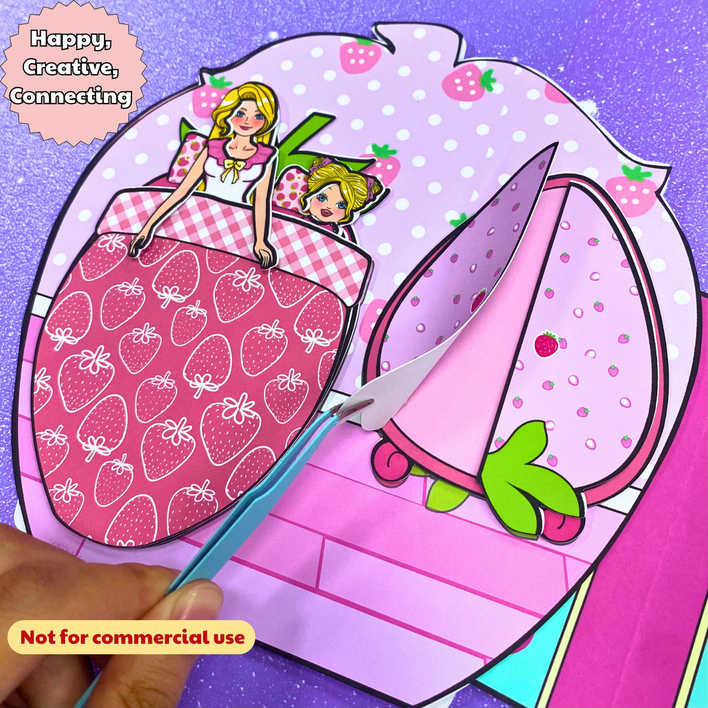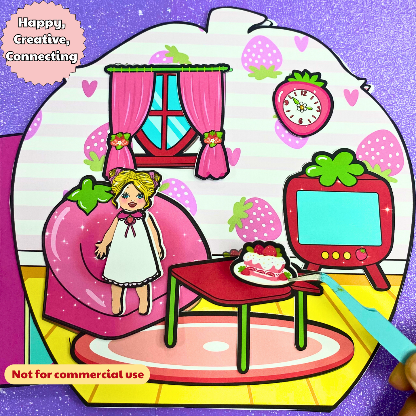 Education Activity Book | Strawberry Paper Dolls House for Kids, Dollhouse Printable, DIY Busy Book for Toddler, Holiday Gift for Kids