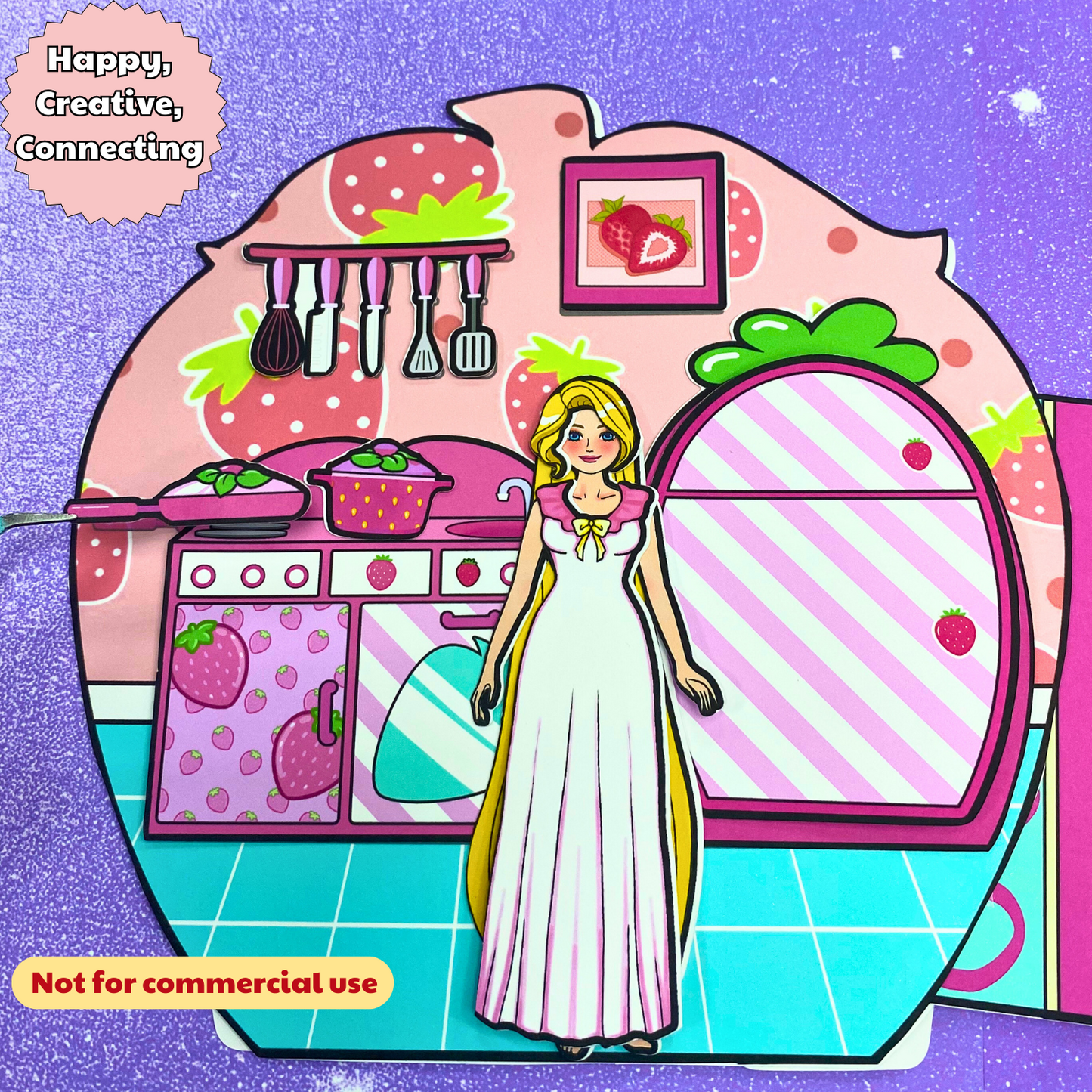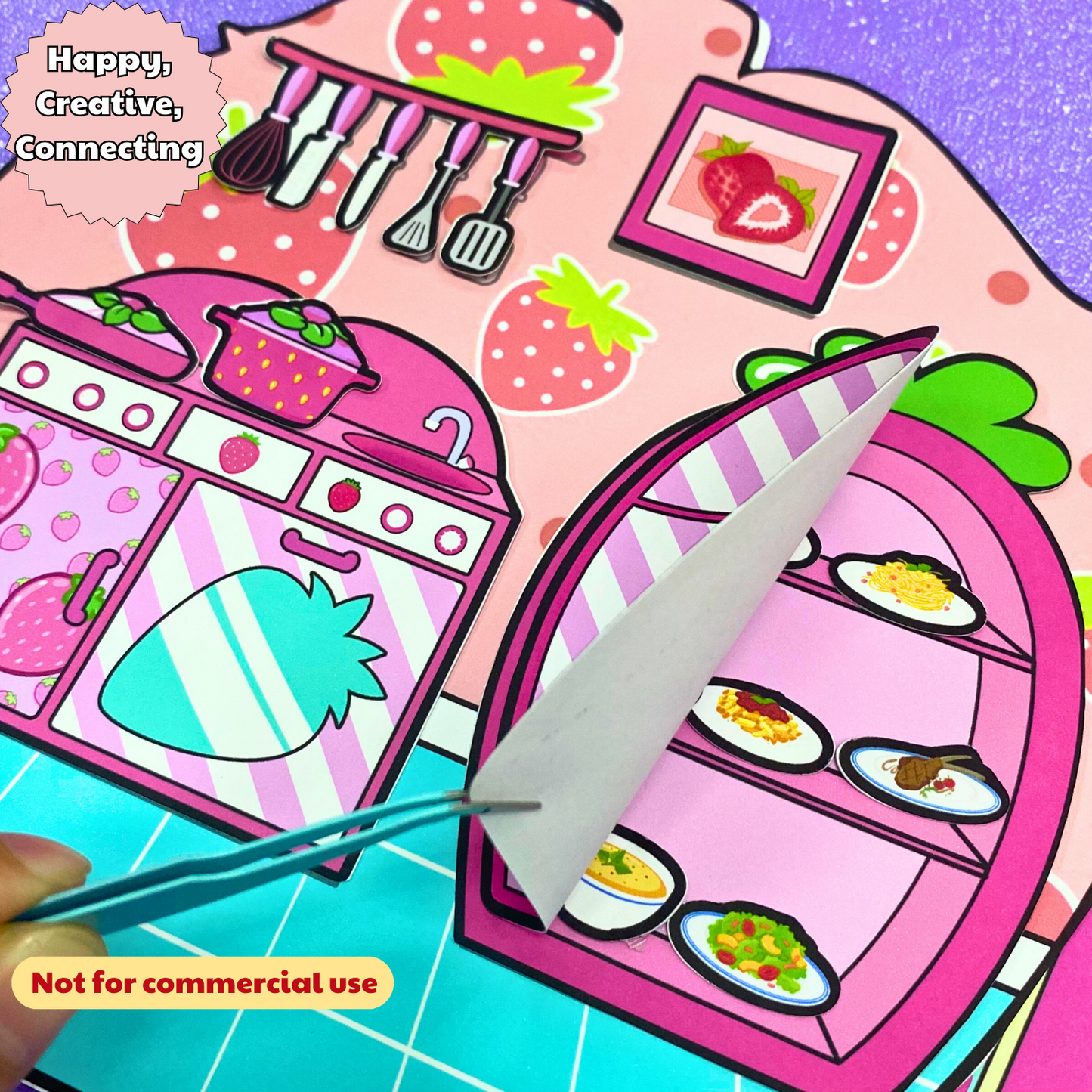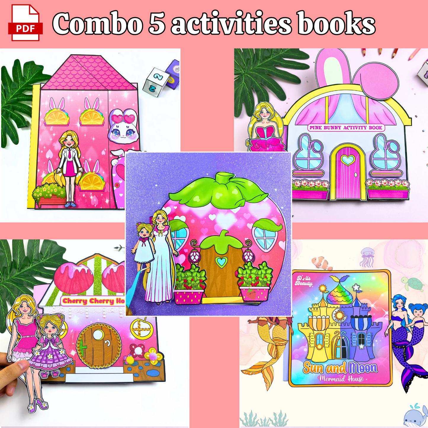 Education Activity Book | Strawberry Paper Dolls House for Kids, Dollhouse Printable, DIY Busy Book for Toddler, Holiday Gift for Kids